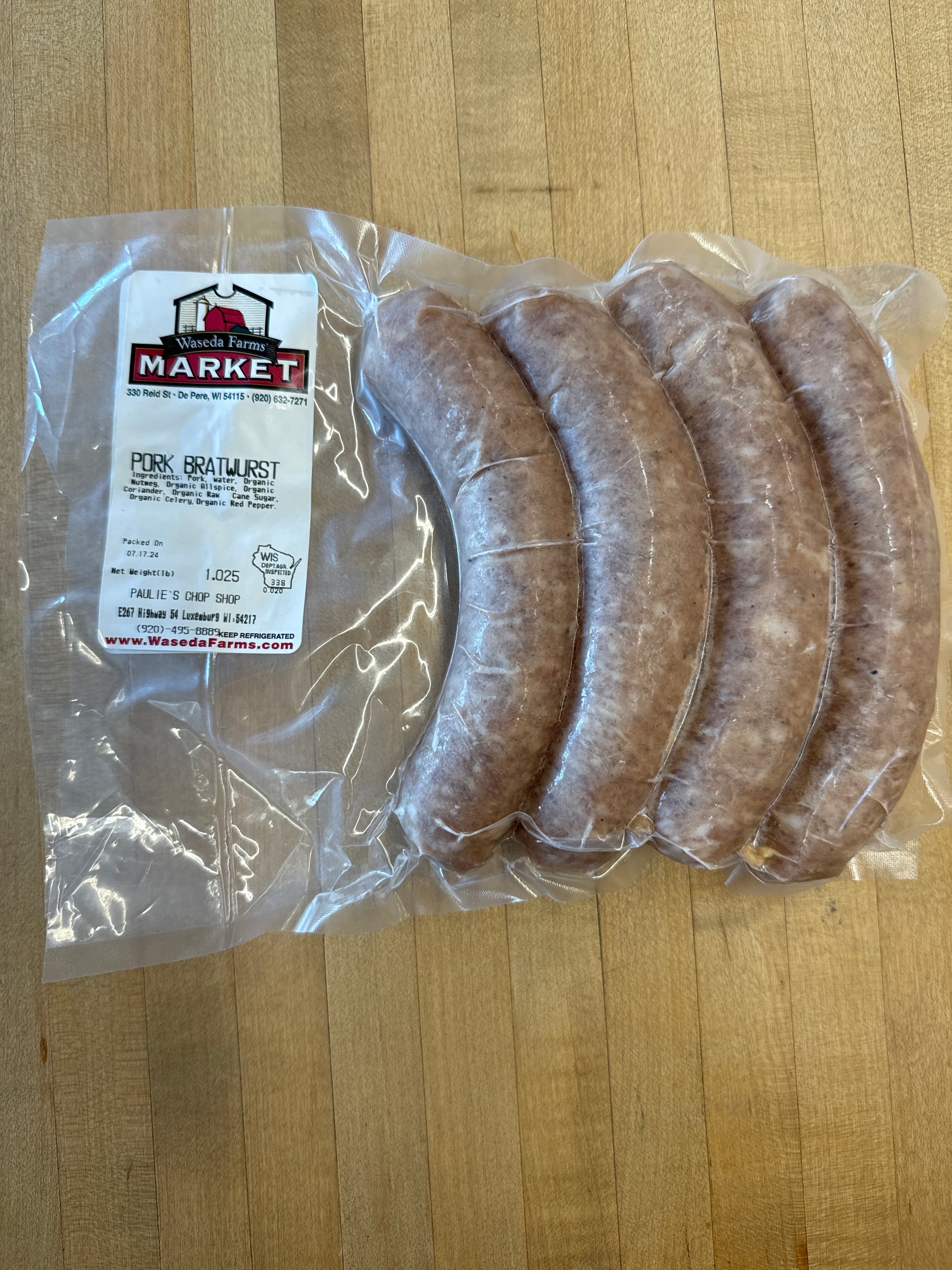 Approximately 1 lb (16 oz) total, with 4 brats per pack.