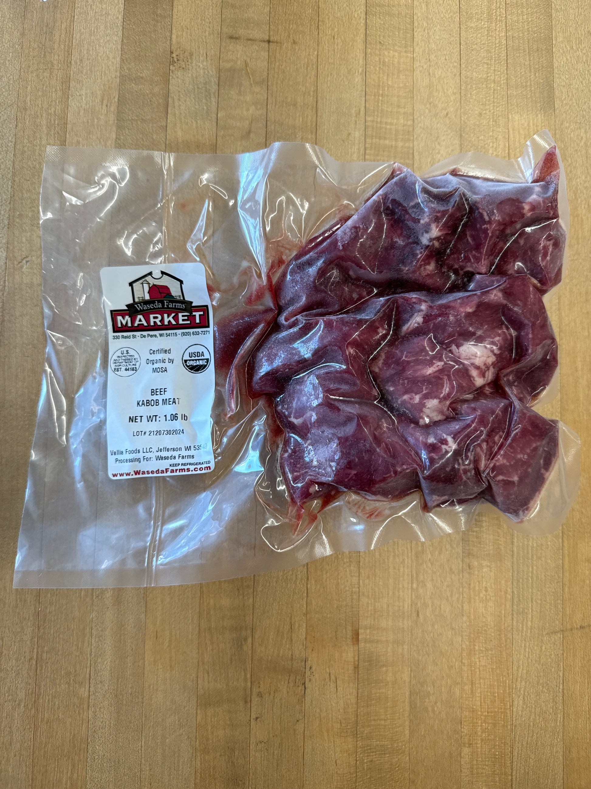 Beef cuts made from our Ribeye, NY Strip, and Sirloin for a good lean, tender, and flavorful cut. This kabob meat is best when marinated for 24 hours. When prepared correctly, the beef becomes tender and will cut cleanly like butter. Perfect for your outdoor grilling or indoor cooking plans. Add the onions, peppers, & mushrooms and you're ready to rock.