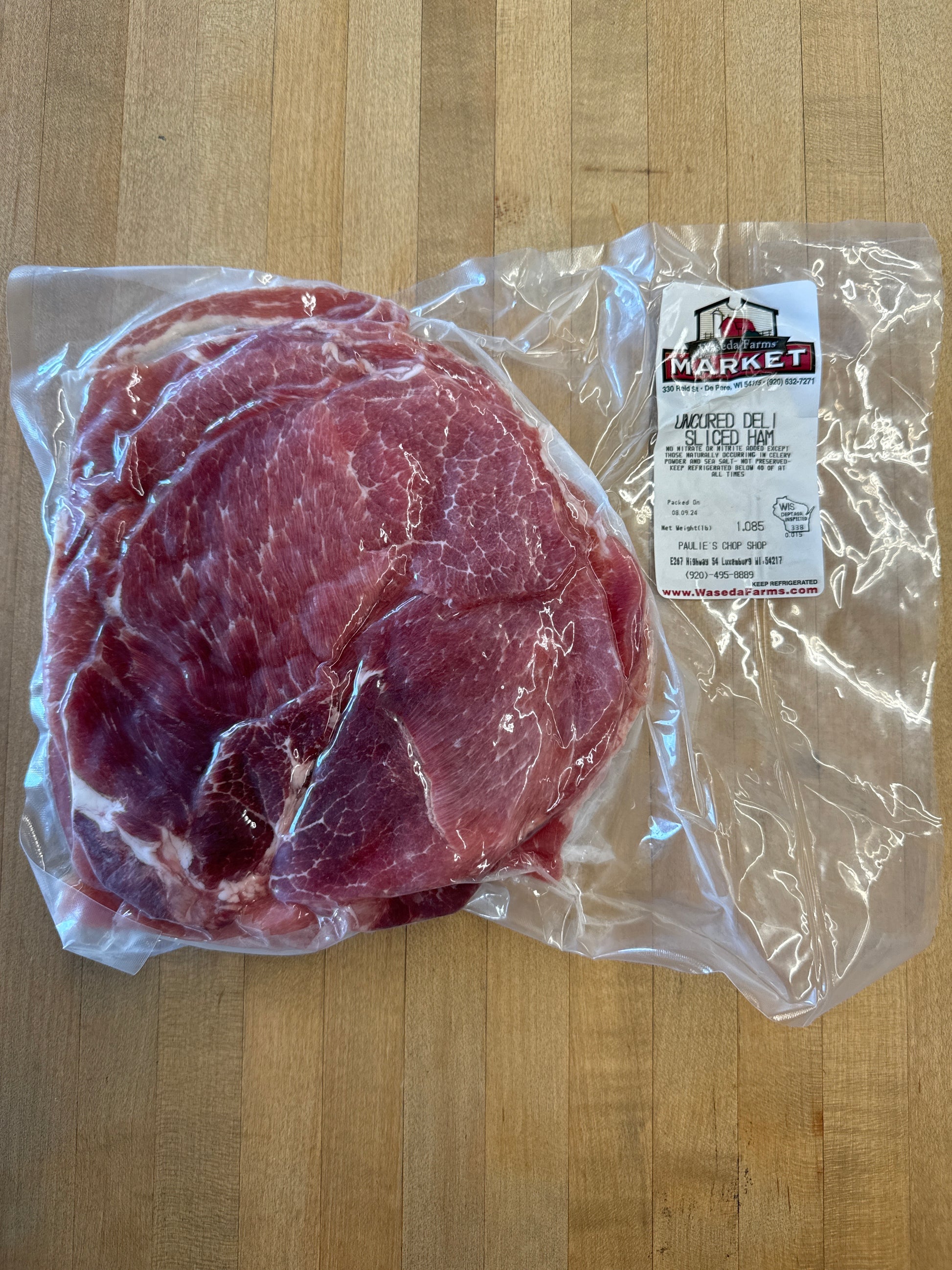Lean, sliced ham ready for you and your family's next sandwiches. Ready to eat. This product is nitrate free. We use celery juice powder during the curing process and then the ham is fully smoked and sliced.