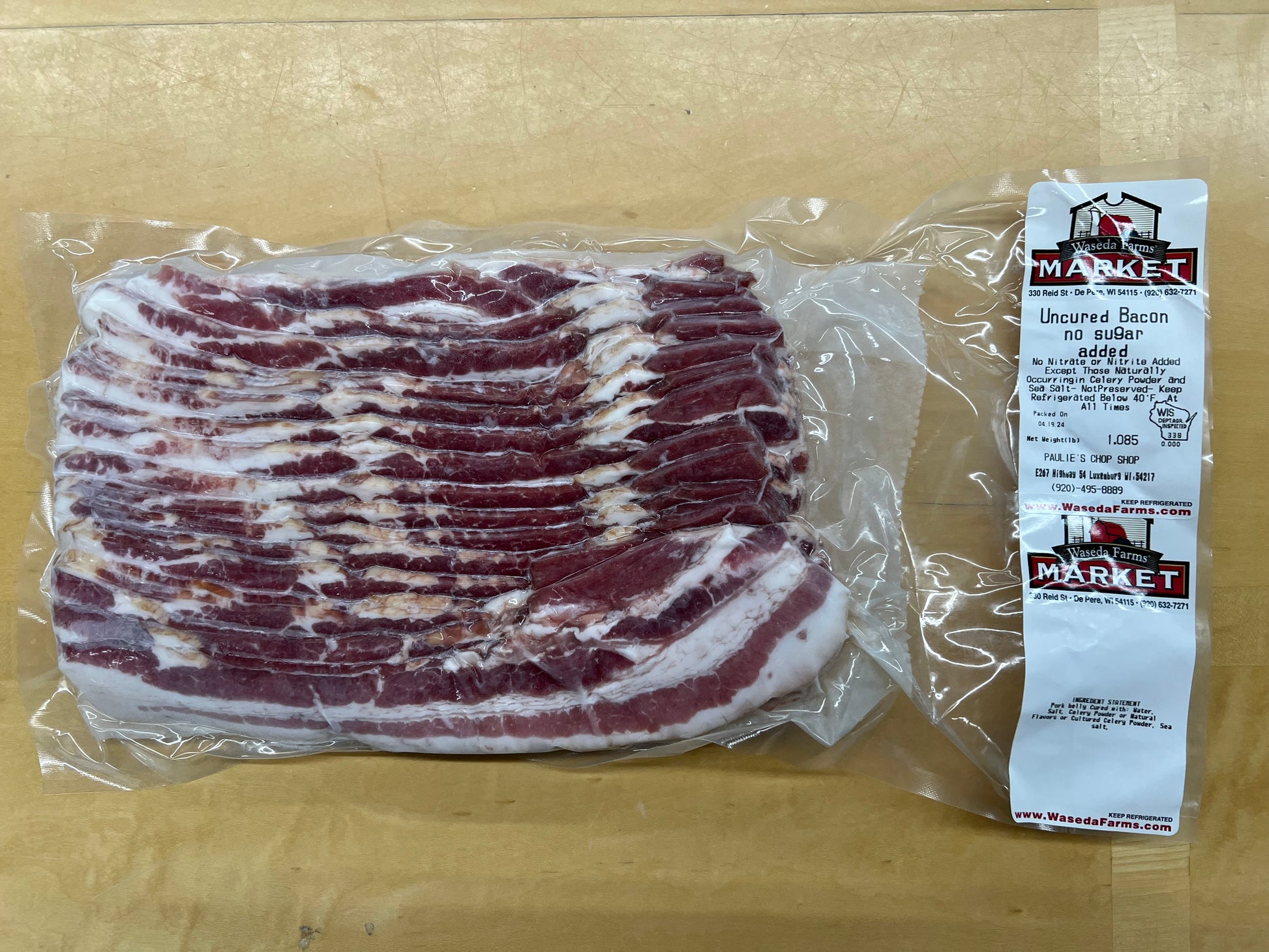 The Chefs we partner with rave about this bacon. Lightly smoked with the perfect just-right thickness to accentuate that great bacon flavor burst. No nitrates or nitrites are added; Natural celery juice powder is used during the curing process.