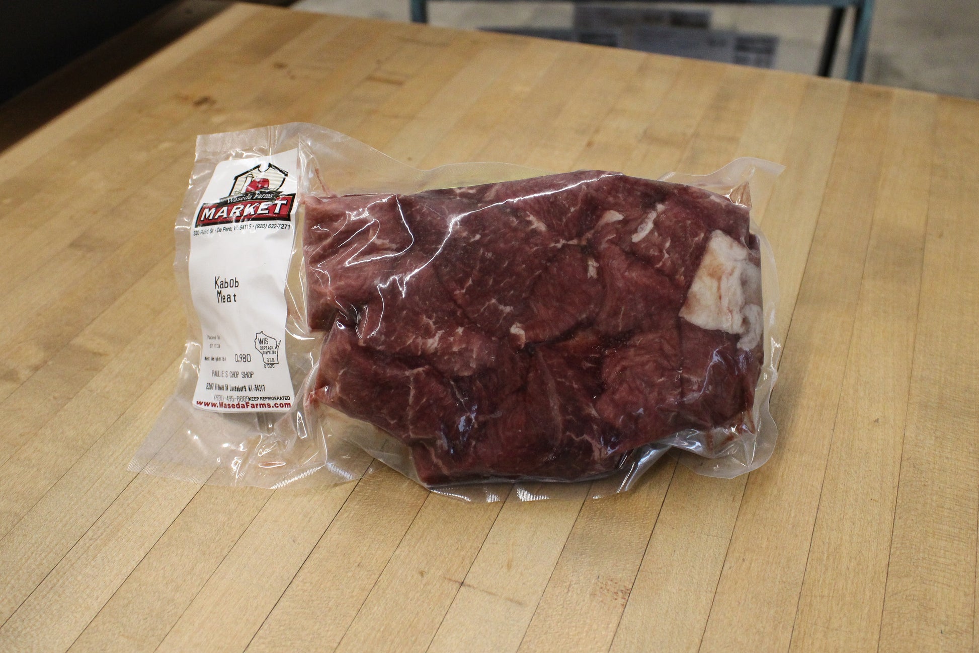 Beef cuts made from our Ribeye, NY Strip, and Sirloin for a good lean, tender, and flavorful cut. This kabob meat is best when marinated for 24 hours. When prepared correctly, the beef becomes tender and will cut cleanly like butter. Perfect for your outdoor grilling or indoor cooking plans. Add the onions, peppers, & mushrooms and you're ready to rock.