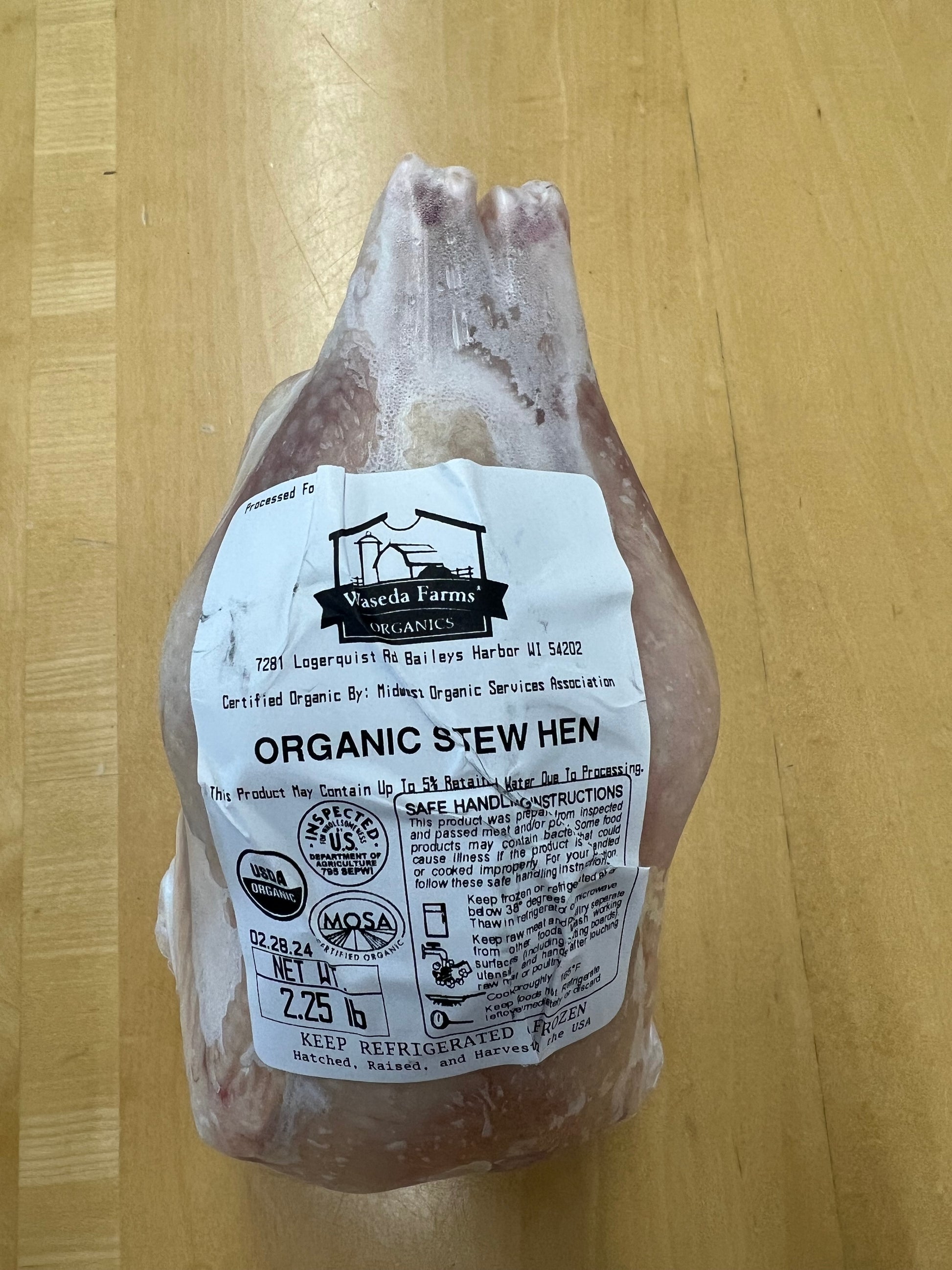 Certified Organic chickens that were previously our egg laying hens for 12-16 months. Perfect for your family booyah, stew, and chili recipe. They have all the nutrition of good pasture-raised chickens. Or maybe it's time to make your own nutritious chicken bone broth.