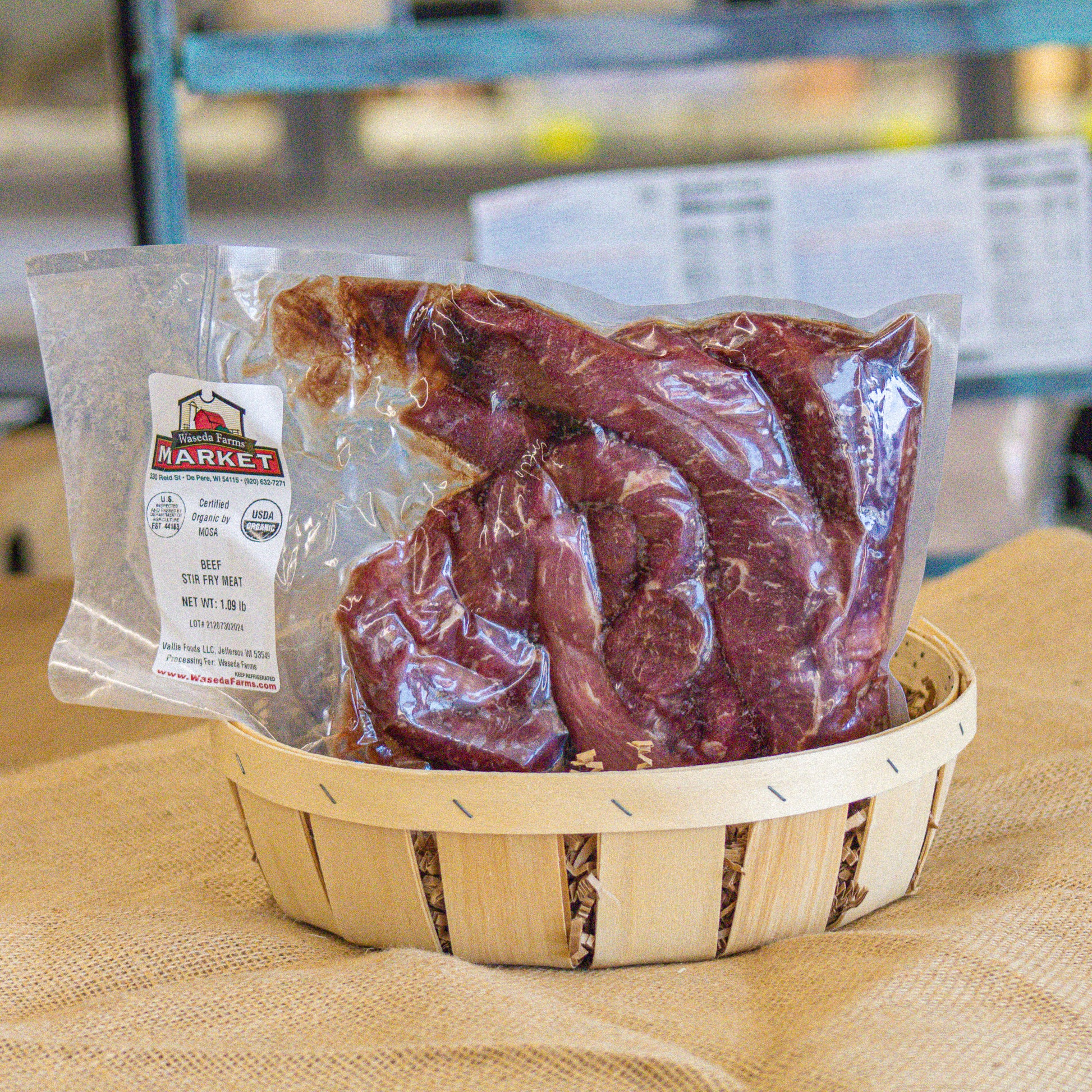 Pre-cut strips of lean beef from the Round Roast, ready for your next home-made dish.